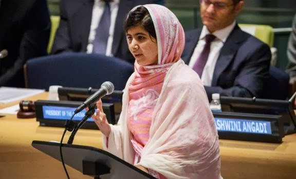 Thưa Ông Tổng thư ký, hòa bình cần thiết cho việc học. Ở nhiều nơi trên thế giới, đặc biệt tại Pakistan và Afghanistan, khủng bố, chiến tranh và xung đột đã ngăn cản trẻ em đến trường học. Chúng tôi thực sự mệt mỏi về những cuộc chiến này. Phụ nữ và trẻ em đang chịu đau khổ ở nhiều nơi trên thế giới dưới nhiều hình thức. Tại Ấn Độ, những trẻ em non nớt nghèo nàn là nạn nhân của sự cưỡng bức lao động. Nhiều trường học đã bị phá hủy ở Nigeria. Người dân Afghanistan đã bị ảnh hưởng trầm trọng chỉ vì hàng rào cản của chủ nghĩa cực đoan trong nhiều thập niên. Những cô gái trẻ phải lao công việc nhà và buộc phải kết hôn ở độ tuổi thơ. Nghèo đói, dốt nát, bất công, phân biệt chủng tộc và sự tước quyền căn bản là những vấn đề bức thiết mà con người phải đối diện.
