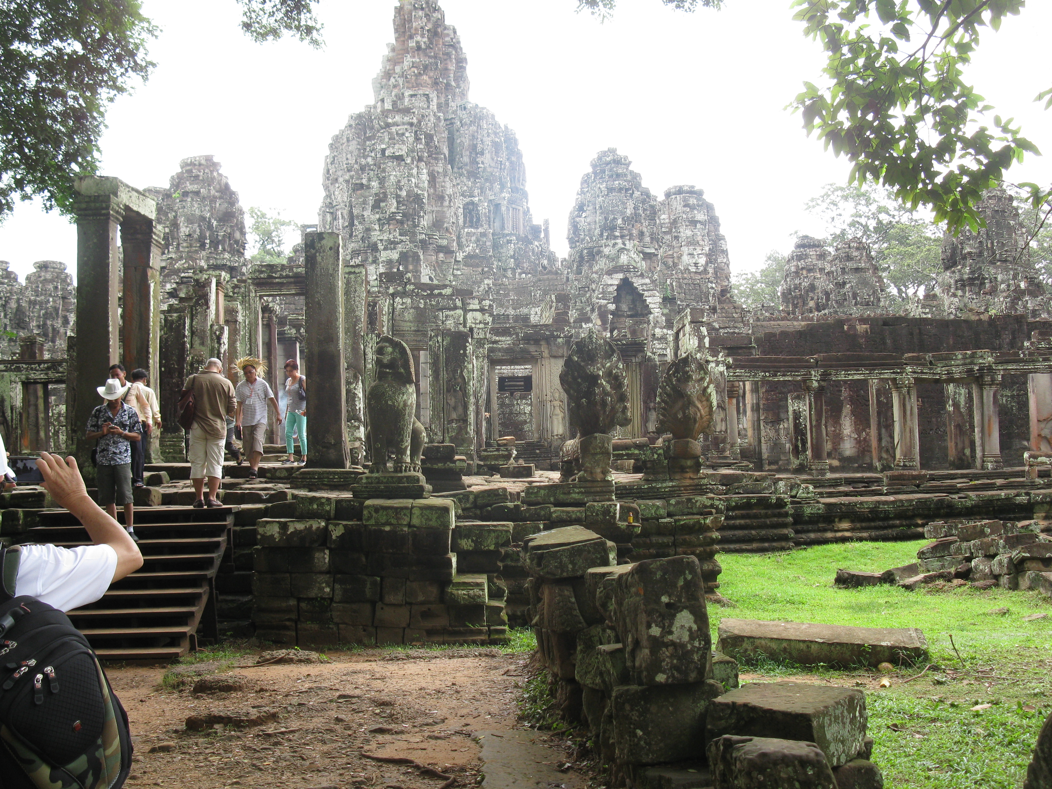 Ngày sau đó dành cho phần tham quan chủ lực của gói tour là viếng quần thể kỳ quan Angkor, trong tôi lại tiếp tục lãng đãng cái cảm giác bâng khuâng mơ hồ.  Du khách luôn bị hối thúc di chuyển để xem lướt qua cho đủ các địa điểm tham quan ghi trong chương trình, như: tháp Phnom Bakheng, Angkor Thom, tượng Bayon, quảng trường đấu voi, Angkor Wat, đền Ta Prom.v.v… Ở con đường mòn đi vào Angkor Wat, ngồi dưới đất là một nhóm năm người đàn ông, mù hoặc cụt chân, lặng im trình diễn các loại đàn dây, bộ gõ… của nhạc cổ truyền Khmer. Guider người bản xứ cho biết đó là những thương phế binh hay thường dân bị tàn phế bởi nạn mìn, bom còn sót lại đầy dẫy trên đất nước này sau mấy cuộc chiến tranh liên lĩ. Trên một bãi cõ bên con đường ra khỏi đền Ta Prom, người ăn xin ngồi thành hàng, chắp tay trước miệng. Một bà già hom hem, mặc váy xà-rong rách tướt nhiều chỗ, không để ý gì đến con khỉ đít đỏ đang lửng thửng bò đi bên cạnh, chỉ cắm cúi lượm những vỏ chai nhựa bị ai đó vứt bỏ ở các gốc cây, mương nước…