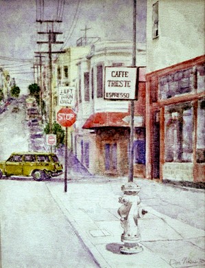 * Tranh vẽ khúc đường nơi có quán Caffe Trieste ở San Francisco