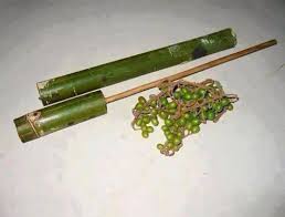 ống thụt làm bằng tre tầm vông và trái mây dóc.