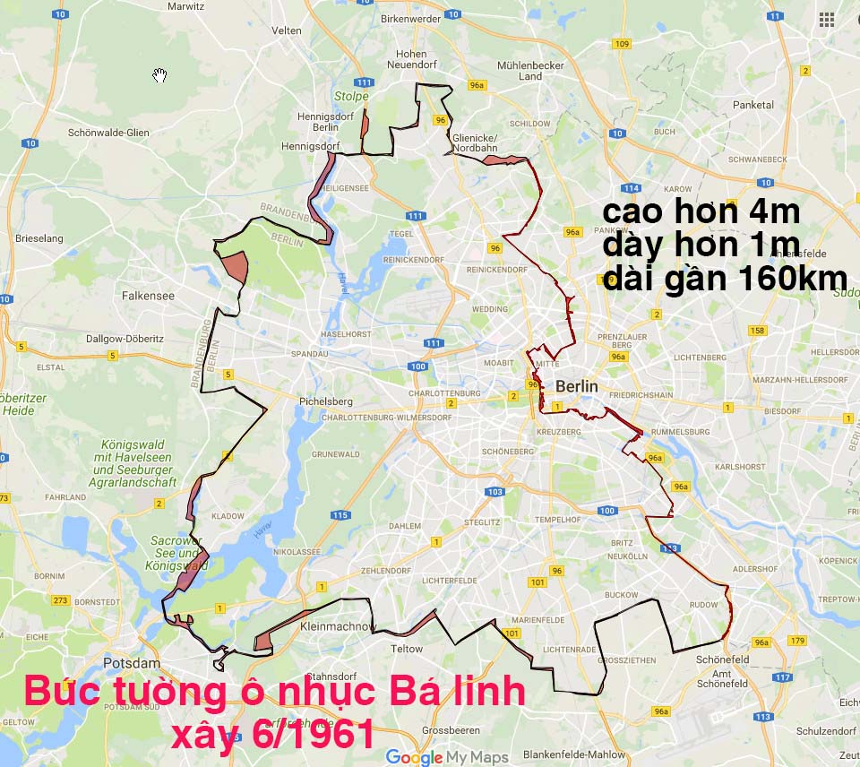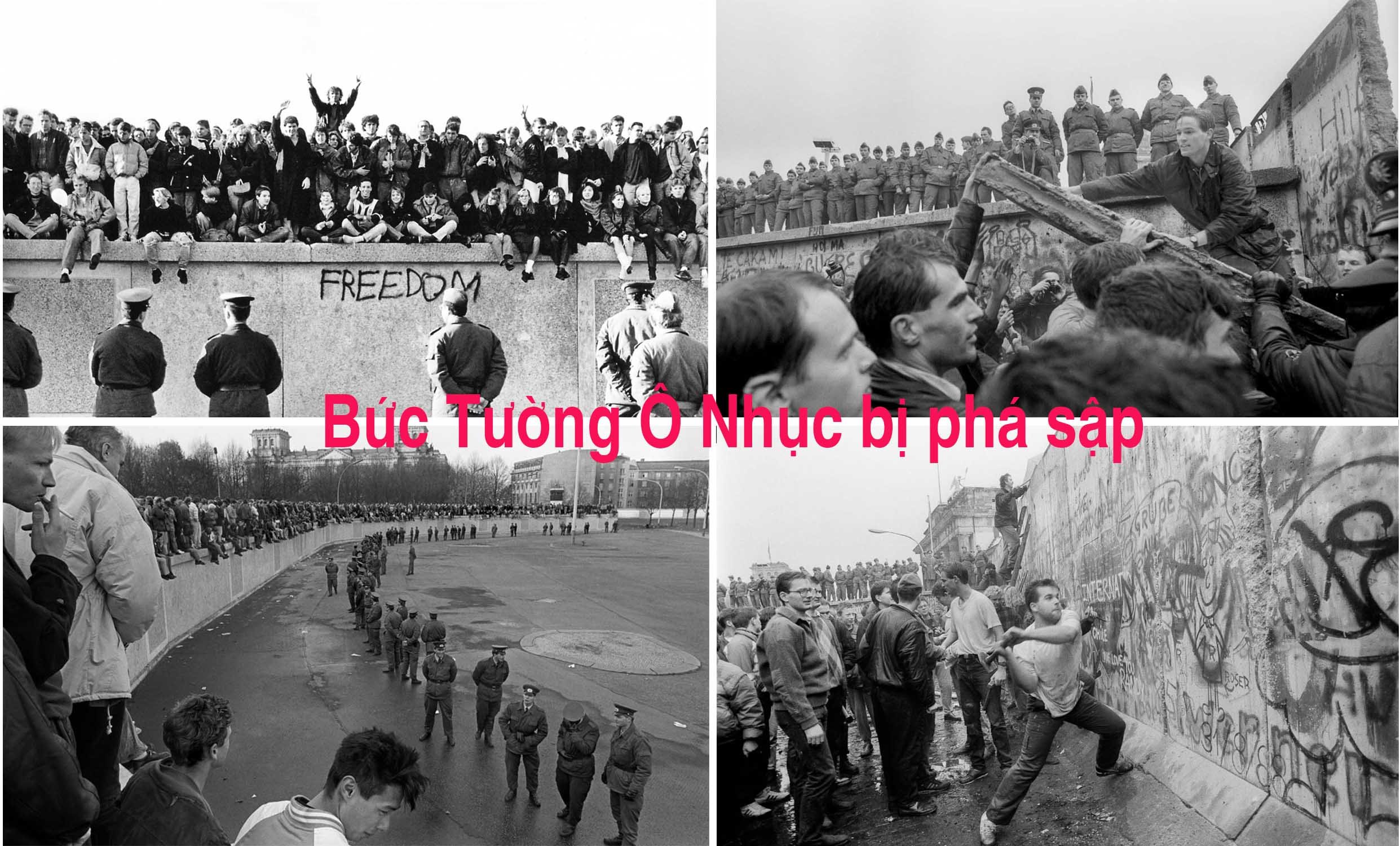 Bức tường Bá linh, còn mang tên là Bức tường Ô nhục, cao hơn 4m, dày hơn 1m, và dài gần 160 km, ngăn chia Đông và Tây Bá linh, đồng thời cô lập thành phố ngay giữa lòng Đông Đức. Đêm mùng 9/11/1989, hơn 20 nghìn người tụ họp hai bên bước tường tại nút chặn Bornholmer ca hát, nhảy múa, uống bia và rượu sâm-banh trước sự bình thản của quân đội. Đám lính canh và mật vụ vẫn chờ lệnh của thượng cấp dẹp loạn và bắn bỏ những ai vượt tường. Khoảng 10:30 khuya, dân chúng leo lên cả bờ tường la to, “Tor auf! Tor auf!; Mở cổng! Mở cổng!” Cả một biển người tràn ngập nút chặn, vượt tường qua lại tự nhiên không gặp một sự kháng cự nào. Lúc đó, hình như không một quyền lực nào có thể cản trở niềm khao khát tự do của dân chúng 2 miền. Chờ mãi không thấy lệnh thượng cấp, đám lính canh đành mở cổng để hai bên thông thương tự do. Khoảnh khắc sau, dân 2 miền Đông và Tây cùng nhau dùng xẻng, búa tạ, búa chèn, đập mẻ từng góc tường. Bức tường bị đẽo gọt dần và khi họ dùng xe ủi đất đâm thẳng vào bức tường đúc bằng xi măng kiên cố thì nó hoàn toàn bị khuất phục. Ngã quỵ và đổ nát thành từng mảnh.