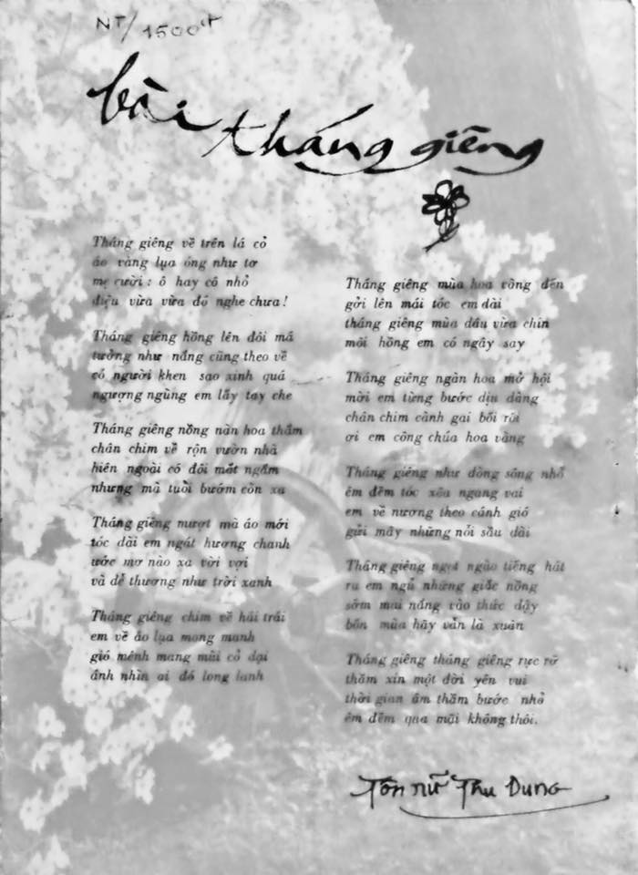 08/05/2019 by tuongtri1 Đây là bài thơ cuối cùng được đăng trên Tuổi Hoa vào tháng 3/1975 Và cũng là cuốn Tuổi Hoa cuối cùng mình có được số 232 Ai ở SG mua được thêm cuốn 233 là chấm hết. (Tôn Nữ Thu Dung) Chia sẻ: Nhấp để chia sẻ trên X (Mở trong cửa sổ mới) X Nhấn vào chia sẻ trên Facebook (Mở trong cửa sổ mới) Facebook Thích Đang tải... Có liên quan