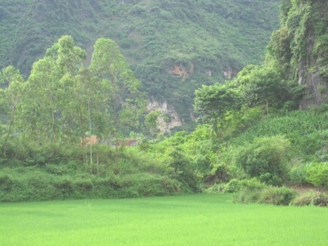 – Đây là cung Bắc Sơn. Còn một cánh cung khác nằm trên địa phận Quảng Ninh, Lạng Sơn, Bắc Giang, Hải Phòng theo hướng đông bắc – tây nam ranh giới của Quảng Ninh – Lạng Sơn, sau đó vòng sang hướng nam Quảng Ninh thì chếch qua Hải Dương và Bắc Giang, lưng quay đông nam, mặt nhìn ra biển Đông nên gọi là cung Đông Triều, phải không? Từ trên xuống dưới ở mỗi ngọn núi, người dân chỉ trồng một loại cây duy nhất: mãng cầu (na), lái xe cho biết na (mãng cầu) ở đây đã thành thương hiệu nổi tiếng, nó giống như mãng cầu dai trong Nam nhưng ngọt hơn, to hơn, hạt nhỏ, dày cùi và thơm ngát, có lẽ do được trồng trên đá vôi, và mỗi năm chỉ cho trái một mùa. Vào mùa thu hoạch người dân lên đỉnh núi hái quả bỏ vào sọt rồi cột sọt trái vào dây cáp cho chạy xuống đất.