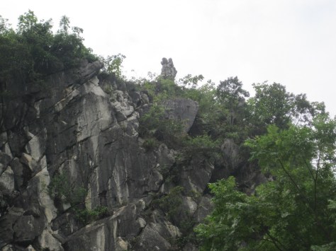 Nghệ Nhuận bị giết tại chỗ. Năm 1427, Liễu Thăng chỉ huy gần 10 vạn quân kéo sang dẹp khởi nghĩa Lam Sơn của Lê Lợi, bị phục kích tại núi Mã Yên, Liễu Thăng bị chém chết, đoàn quân bị vây đánh, tiêu diệt và bắt sống gần như toàn bộ ở Xương Giang. Người lái xe say sưa giới thiệu Ải Chi Lăng với tôi cùng những chiến tích chống xâm lược lẫy lừng của Chi Lăng, Lạng Sơn chẳng khác một sử gia. Anh nói thêm, nếu muốn đi dọc theo Ải Chi Lăng phải theo quốc lộ 1 cũ đến đèo Sài Hồ ranh giới giữa hai huyện Chi Lăng và Cao Lộc, khá hiểm trở; còn tường đá “Ải Chi Lăng” này chỉ nhằm giới thiệu một quần thể của Ải Chi Lăng! Quá tường đá “Ải Chi Lăng” hướng về thành phố Lạng Sơn một chút (cũng thuộc xã Quán Thanh) là “Núi mặt quỷ” (hình chụp bên dưới), trên vách núi có các hốc đá nhìn từ xa giống một đầu lâu, có tóc (những dây leo màu xanh phủ trên), hai hốc mắt, mũi, miệng. Khu vực núi hình mặt quỷ không một cây, cỏ nào mọc tạo nên nét màu đỏ. Người dân ở đây cho biết núi này đã có từ lâu đời và không hiểu sao vùng mặt không cây, cỏ nào mọc chứ chẳng phải do con người cắt tỉa vì không ai dám leo lên chỗ “mặt quỷ”, làm như thế là không tôn trọng “đấng tạo hóa”, sẽ bị trừng phạt; chếch núi “mặt quỷ” là ngọn “núi quỷ” (hình dưới) độc lập có hình dáng 3 người, người sau tựa tay vào vai người trước. Mỗi khi gió thổi qua hai ngọn núi này tạo nên âm thanh như tiếng ma kêu quỷ khóc, dân sống quanh đây đã quen nên không sợ hãi gì mà họ bảo “mặt quỷ” tuy tượng trưng cho cái ác, nhưng “mặt quỷ” và “núi quỷ” thật hiền hòa với dân làng.