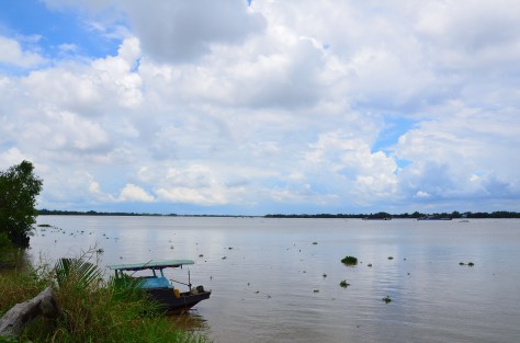 Tôi đứng trên cầu Mỹ Lợi ngó xuống Bến phà cũ ngày xưa. Con sông Vàm Cỏ mênh mang với mặt nước đùng đục màu phù sa. Những con tàu kéo và xà lan như những chấm nhỏ ì ạch rẽ nước, để lại phía sau những hai làn sóng dài, thật lâu mới tan. Những đám lục bình gấp gáp trong con nước với sự vô định. Hướng lên thượng lưu, ngút tầm mắt một viền xanh lờ mờ của cây cối chạy dài như sự chuyển động tiệm tiến của bầu trời trời xuống mặt đất. Trước mặt, chếch phía Gò Công một bình nguyên với thảm thực vật xanh ngắt mở ra, tít tắp phía xa có thể nhìn thấy dăm ngọn núi ẩn hiện bên Vũng Tàu.. Nghe bảo ngày trước, tất cả các phương tiện giao thông đều phải phụ thuộc vào Bắc Mỹ Lợi, gây khá nhiều trở ngại , tốn thời gian và nhiều nguy hiểm…..