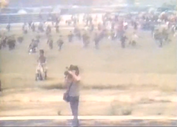 Chúng tôi dự liệu gặp cảnh hỗn loạn và một đám động giận dữ, nhưng từ trên máy bay chúng tôi nhìn thấy Đà Nẵng và các con đường trong phố đều êm. Nên chúng tôi hạ cánh. Khi tàu bay từ phi đạo vưa quẹo vào đường bến thì đột nhiên người ta ùa ra từ các nhà chứa máy bay. Phi trường Đà Nẵng bấy giờ là một căn cứ không quân khổng lồ trong thời chiến, từ các nhà chứa máy bay của căn cứ khổng lồ ấy, chắc phải đến 20,000 con người chợt hiện ra và ùa tới máy bay chúng tôi. Họ ngồi trên xe jeep, xe gắn máy, thiết vận xa, họ dùng mọi thứ xe tư nhân – mọi phương tiện xe cộ mà loài người đang sử dụng – họ chạy đến chúng tôi. Chúng tôi dừng lại một lúc giữa hai phi đạo – Tôi cho máy thu hình chạy. Trước khi thấy đám người này, chúng tôi định ra khỏi phi cơ. Nhưng chợt tôi có cảm giác ruột gan quặn thắt – cái cảm giác của những người làm tin chiến trường. Tôi tự bảo “Đừng, đừng ra khỏi tàu bay.” Những người này đang hoảng hốt. Bất cứ người nào nhỏ con đến đâu nhưng khi hoảng hốt, họ mạnh hơn mình nhiều. Tôi đem máy quay phim ra phía cầu thang sau, đứng đấy thu hình. Trong lúc phi cơ còn di chuyển, người đã chạy ùa lên thang. Chắc có người đã leo qua bên hông cầu, bẻ cong lại, nên cầu thang không rút lên được nữa. Trong khi tôi đang quay, họ bắt đầu bắn lẫn nhau. Họ nổ súng loạn xạ từ phía sau để chen lại gần máy bay. Lúc đó, tôi ngoảnh lại bảo Bruce “Mẹ kiếp, bọn mình ngập cứt rồil”