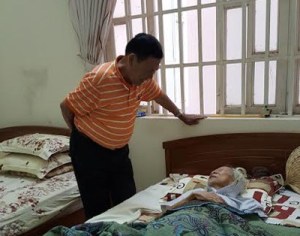 Nhà văn Trần Yên Hòa bên giường bệnh thi sĩ Hoài Khanh