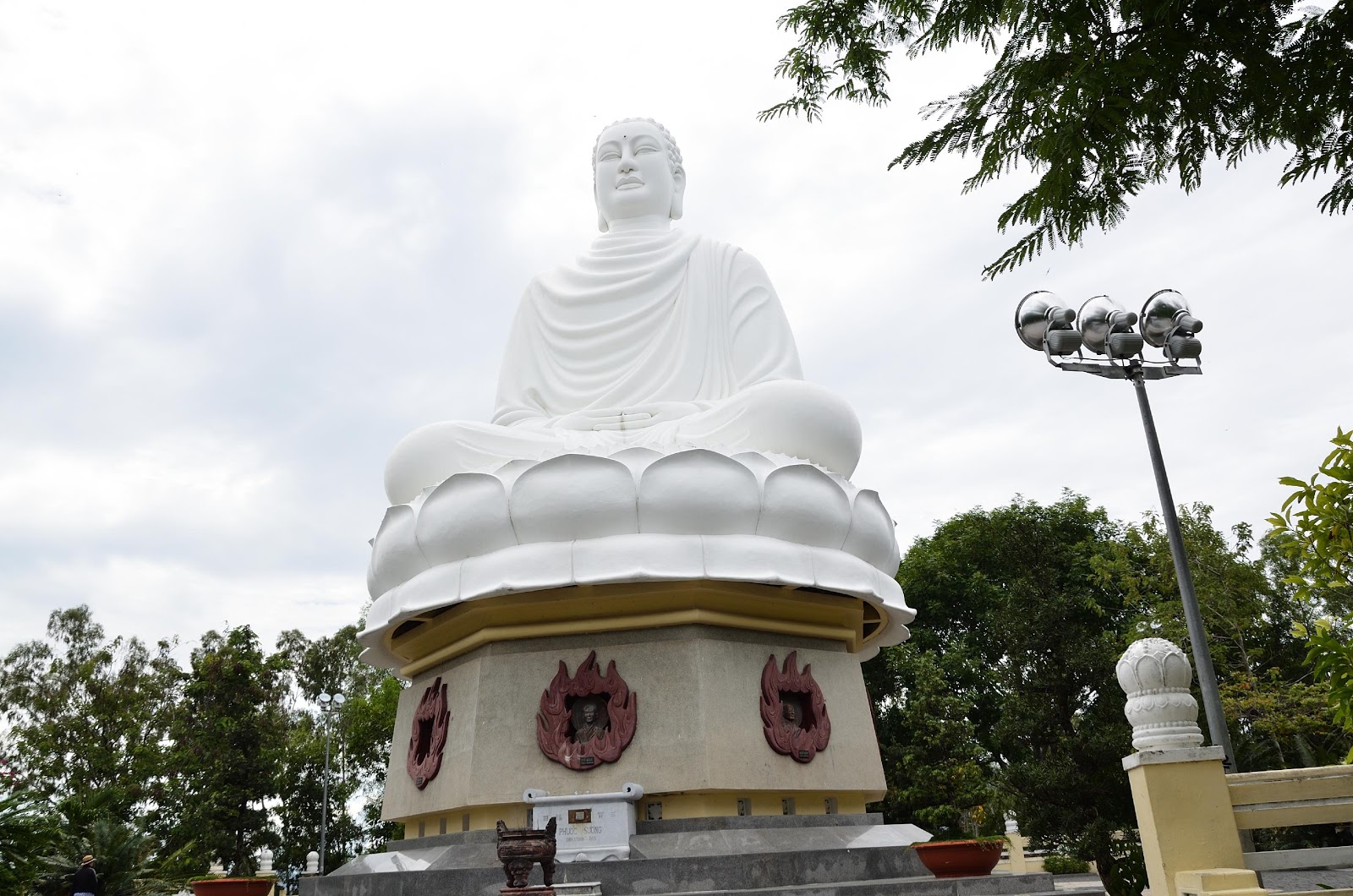Pho tượng ông Phật khổng lồ ngồi giữa đài sen vẫn còn đó dưới bầu trời xanh khoáng đãng, ung dung vài cụm mây trắng, trầm lặng nhìn thế sự và sự đổi thay. Một sự quan sát tinh tế đi vào ngóc ngách cuộc sống của muôn vật, muôn loài nhưng lại vô ưu, vô ngã theo giáo lý nhà phật. Bên dưới là dung tượng bán thân của các vị bồ tát đã xả thân trong sự kiện “Phật giáo phẫn nộ” vào năm 1963, dưới chính quyền ông Ngô Đình Diệm, nhằm phản đối chính sách đàn áp Phật tử. Dưới nữa….Trí nhớ tôi quay trở lại khá chậm….Tôi nhớ mang máng là những hộc kim tĩnh của các gia đình Phật tử….nhưng giờ đây nó đã dời đi mất. Thay thế vào đó là phần đế lát bằng đá hoa cương , được nâng cao , đầy góc cạnh .Hai con rồng chầu ngậm ngọc, lúc trước có sơn màu trắng, nhưng nay được tô vẽ bằng những màu sắc khá tương thích và hòa hợp với bối cảnh. Cảnh quan sạch sẽ và nhiều công trình phụ trợ mọc lên xung quanh, so với lúc tôi lên đây, cách hai mươi năm. Lúc ấy khá vắng vẻ , đầy cây bụi rậm rạp….