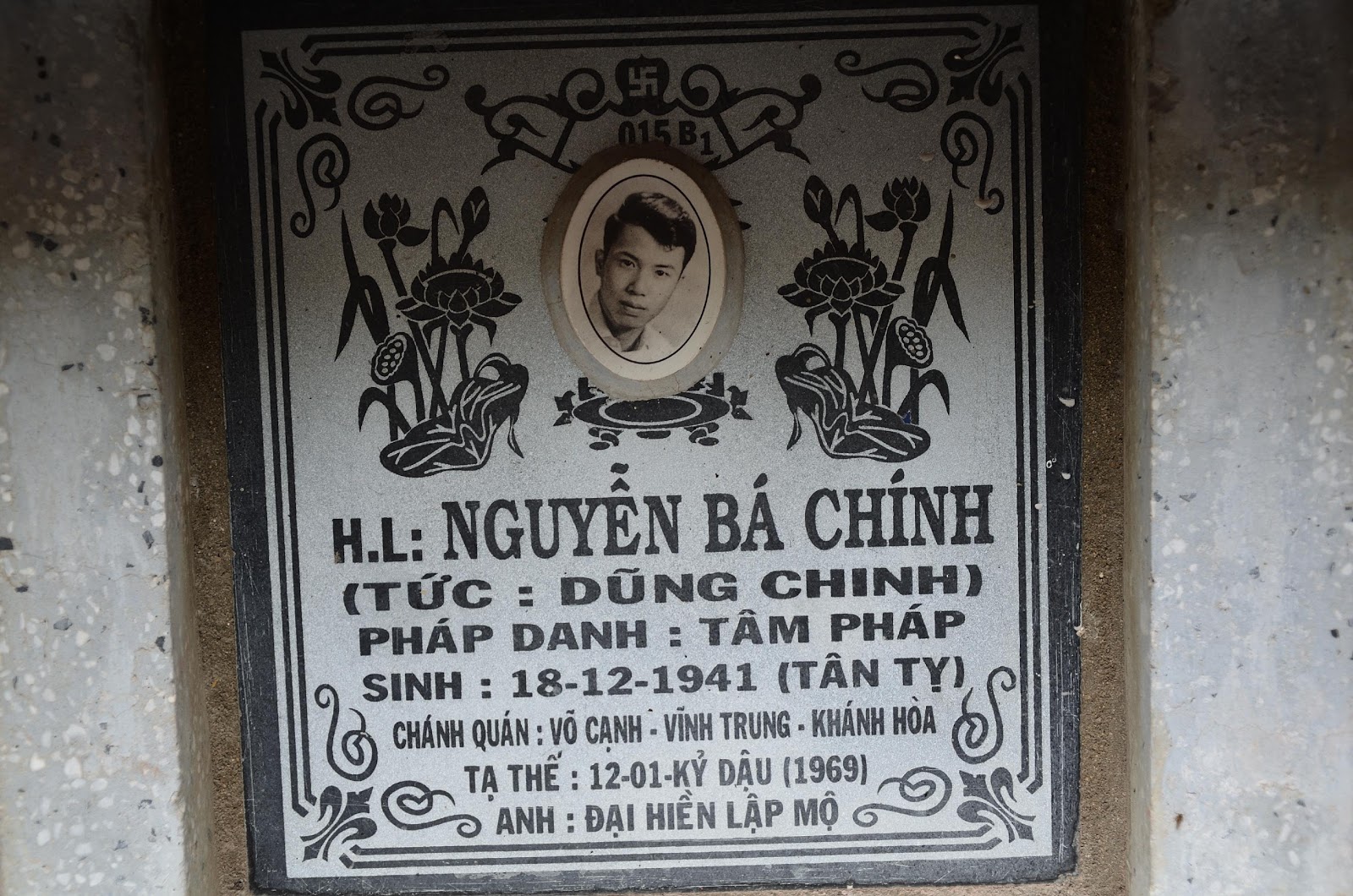 Ghi chú: Di mộ nhạc sĩ Dũng Chinh ( tên thật Nguyễn Bá Chính) , hiện đang nằm tại lô B1, khu kim tĩnh trên tượng Kim Thân Phật Tổ ( Phía tay trái), chùa Long Sơn, TP. Nha Trang. ( Tác Giả)