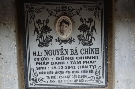 _ Ảnh tên Nguyễn Bá Chính, sinh ngày 18/12/1941; mất ngày 12/01/1969; trước chôn tại nghĩa trang Phương Sài, sau đó cải táng lên đây.